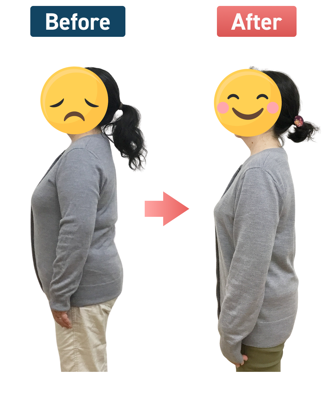 実際に体が軽くなり、歩く速度が上がりました。また悩みの種だった頭痛やめまいが少なくなり薬を飲んだり、寝込んだりする事がほとんどなくなりました。