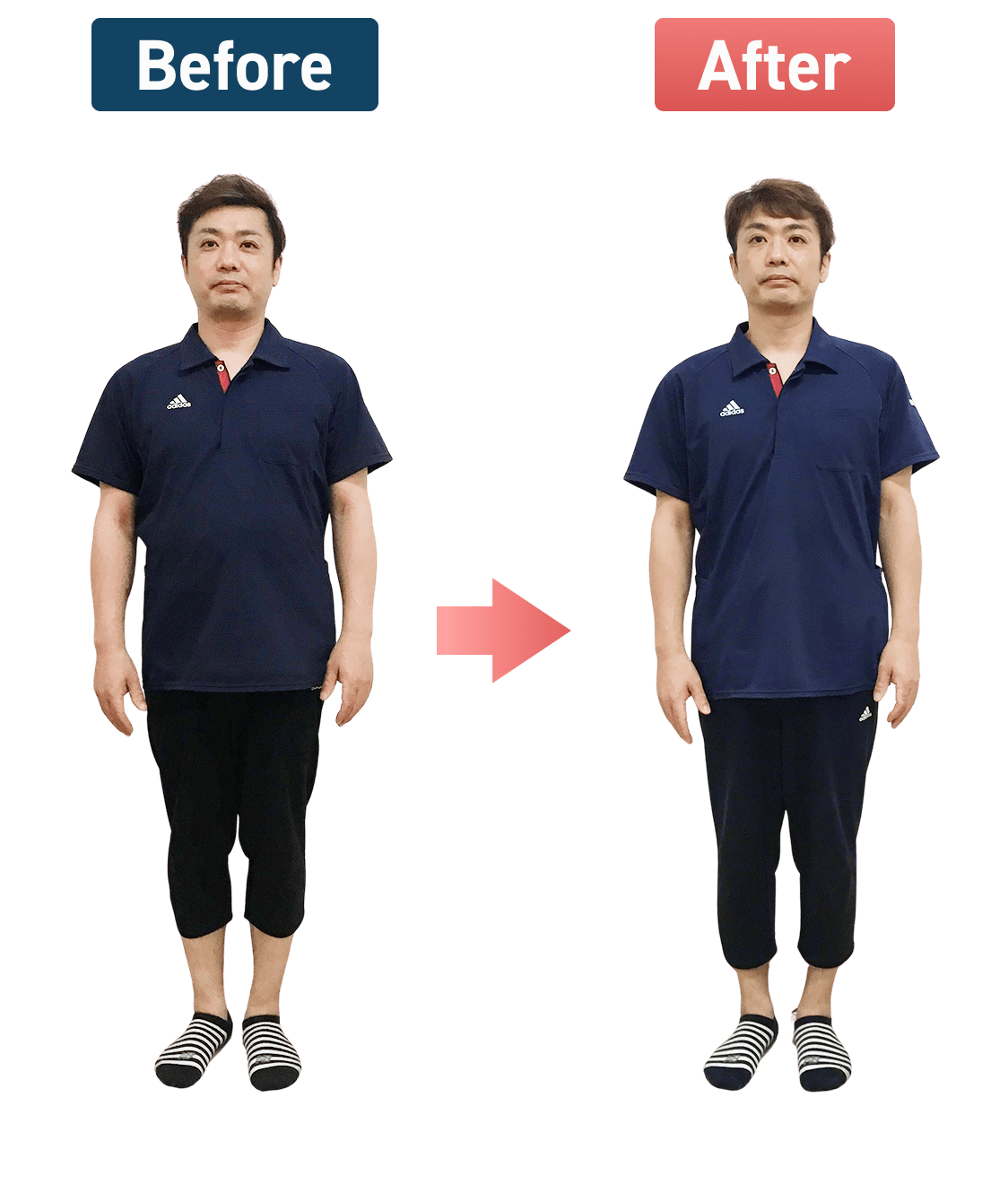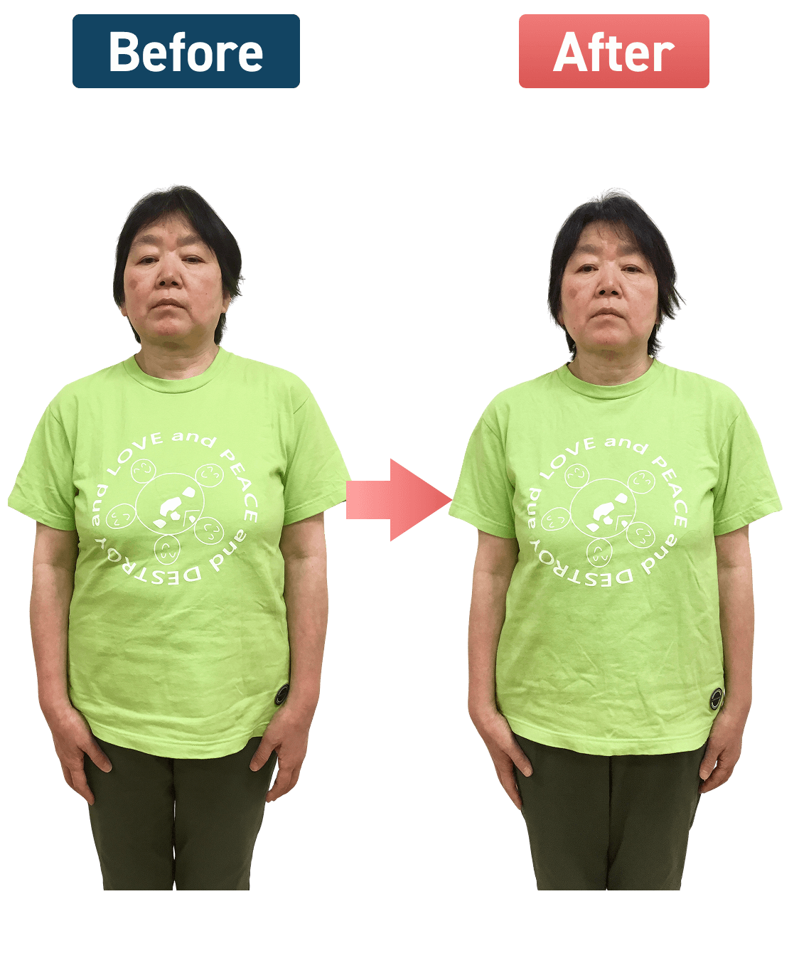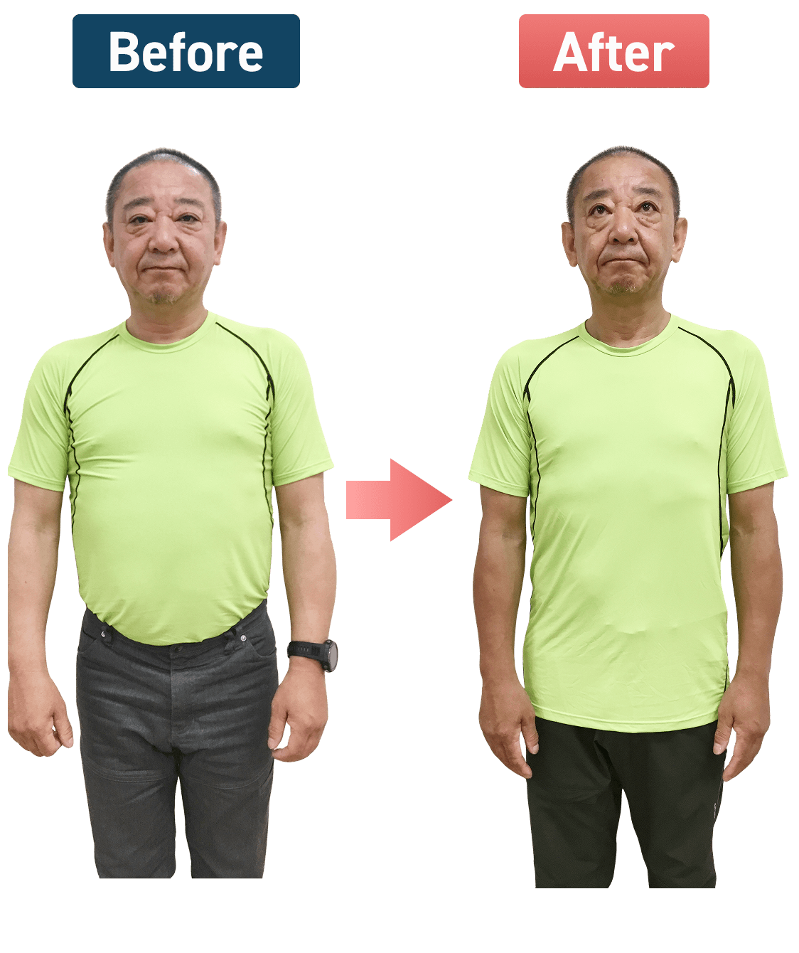 1番気になっていたお腹周りの脂肪が減って、体型を気にせずTシャツが着られるようになりました(^_^)b