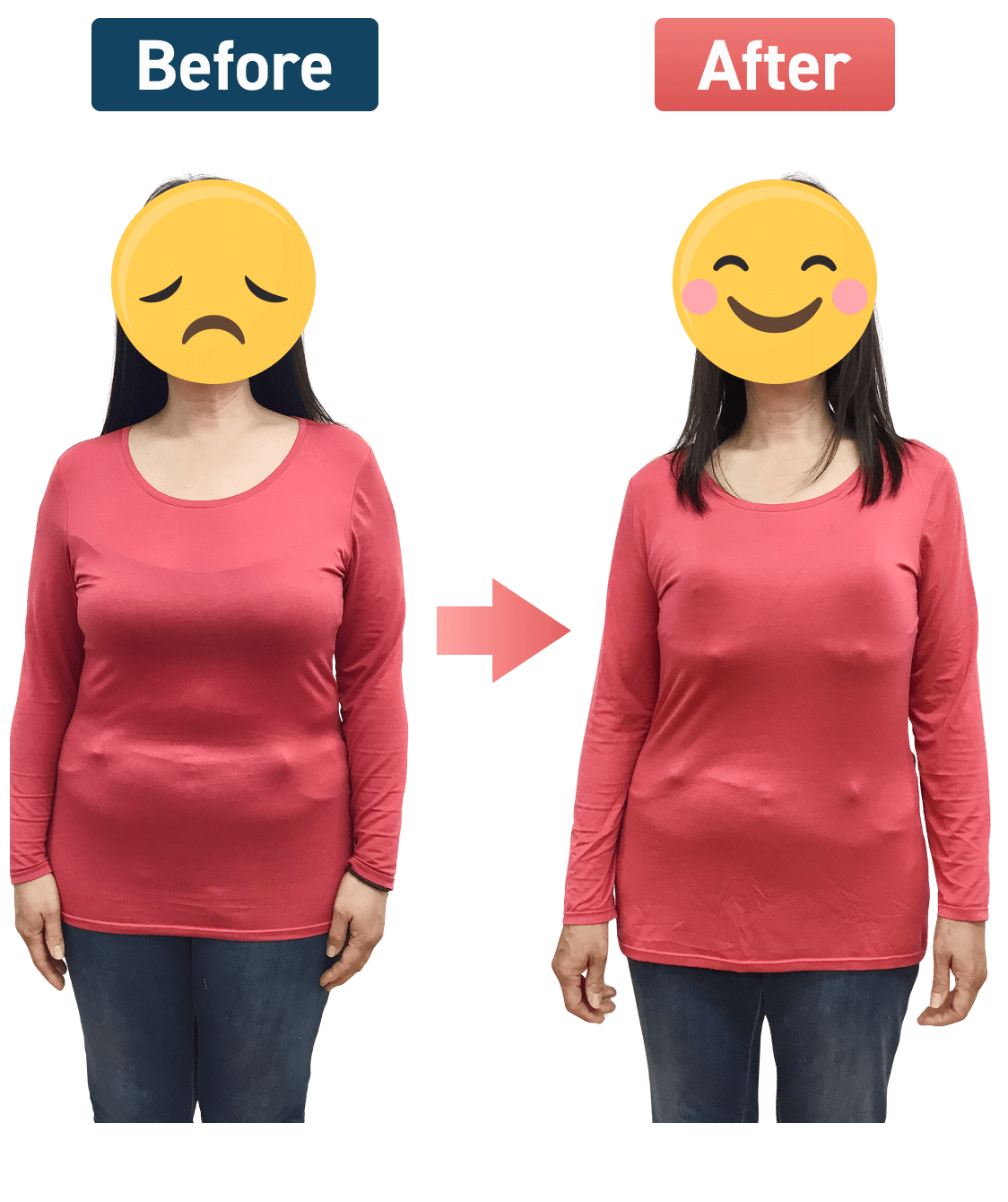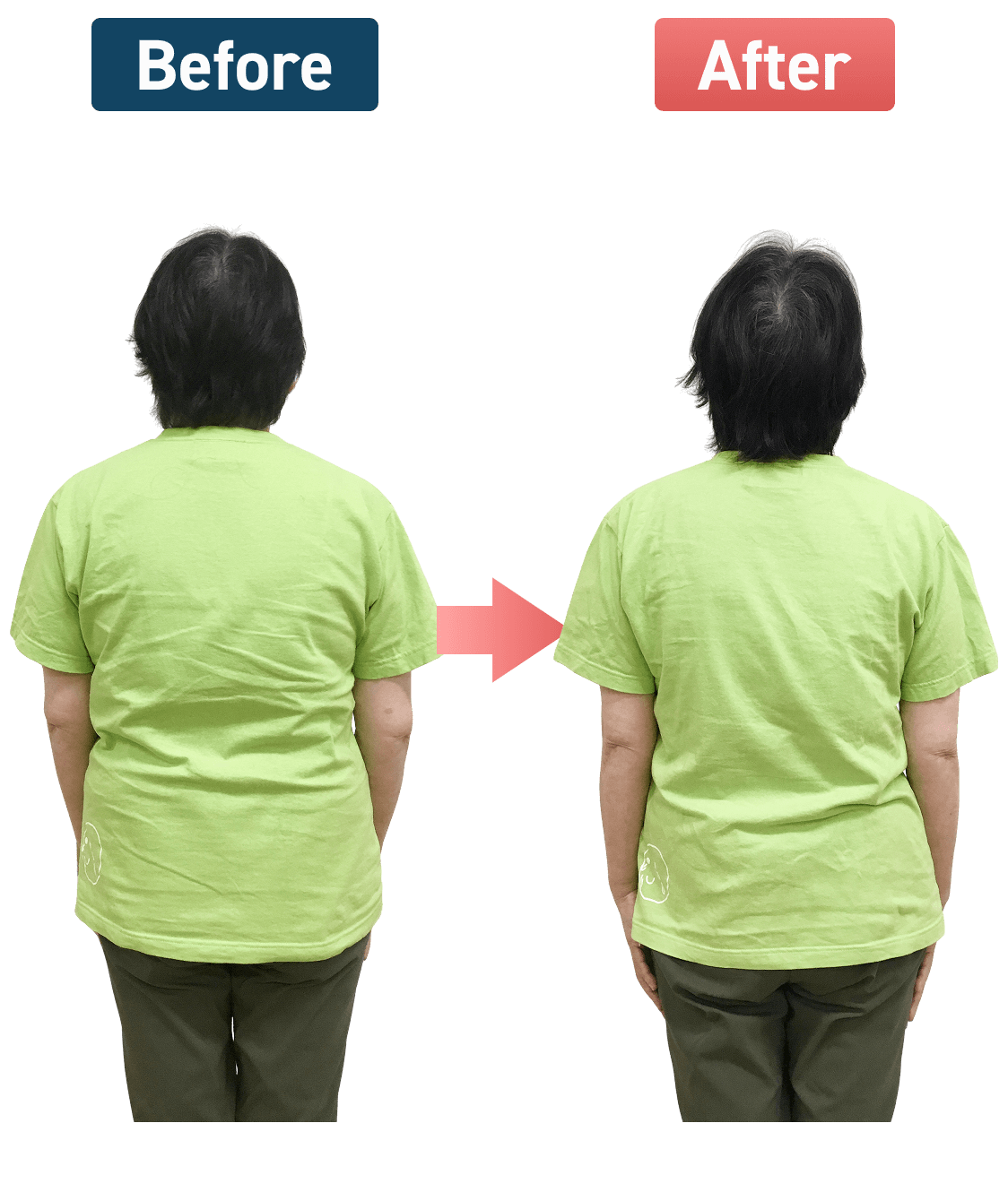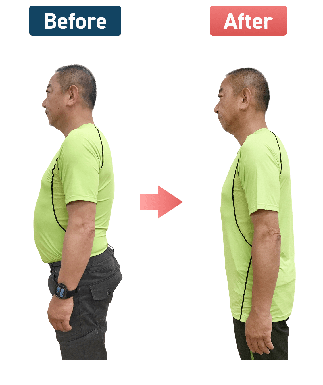 1番気になっていたお腹周りの脂肪が減って、体型を気にせずTシャツが着られるようになりました(^_^)b