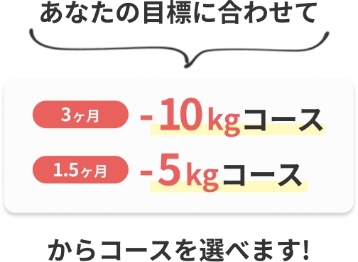※1.5ヶ月コースの方は-5kg、3ヶ月コースの方は-10kgのダイエットを目標にしています